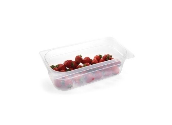 Polypropylenové gastronádoby nejvhodnější ke skladování a přepravě studených potravin. Materiál je "měkčí" ve srovnání s polykarbonátem a je méně průhledný. Víka jsou vodotěsná. Teplotní použití: do +70°C.