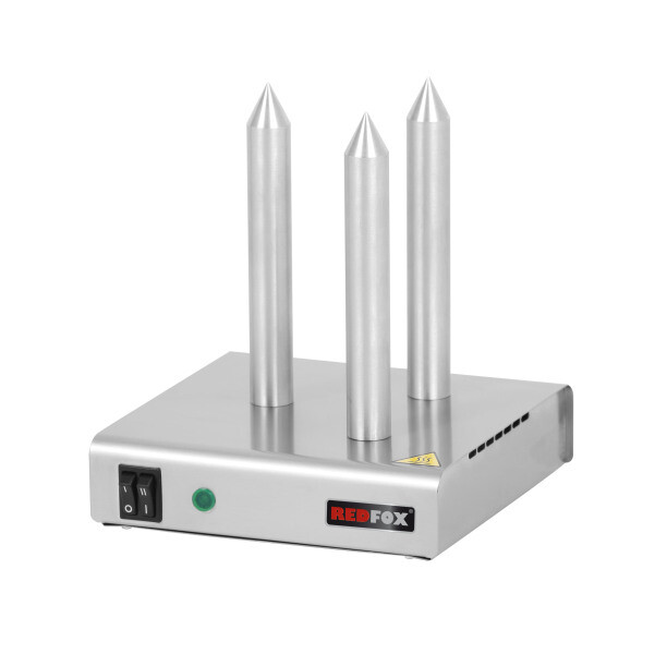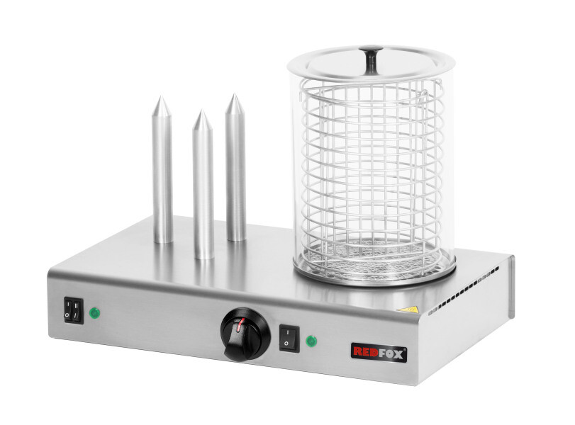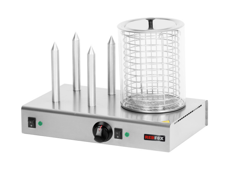 Zařízení pro přípravu hot dogů REDFOX se skládá ze dvou částí – nahřívacích trnů a nádoby na ohřev párků. Obě části jsou dostupné jako součást jednoho zařízení nebo každá zvlášť. Ohřívač párků je vybaven samostatným vypínačem a regulací teploty.