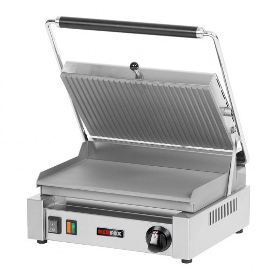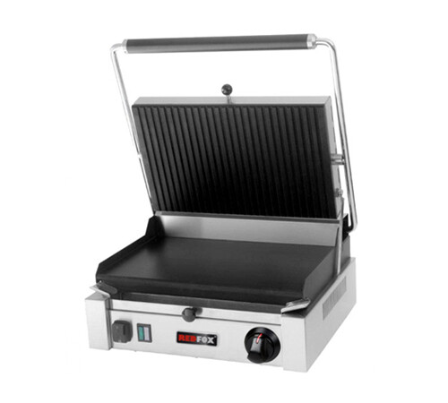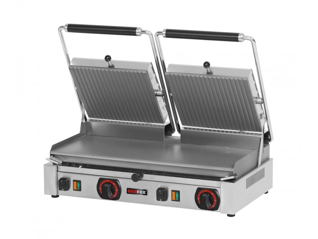 Elektrické kontaktní grily REDFOX nerezové konstrukce v jednoduchém nebo dvojitém provedení s grilovacími deskami z ocelové slitiny s vysokou tepelnou vodivostí. Spodní a horní grilovací plochy hladké nebo rýhované.