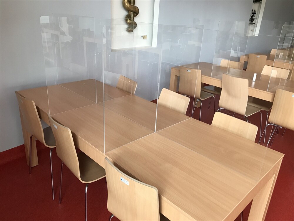 Oddělovací přepážky jsou vyrobené z kvalitního materiálu (PMMA), který má výborné optické vlastnosti. Díky tomu jsou přepážky téměř neviditelné a nenaruší opticky vaše pracovní místo. Mechanické ochranné přepážky jsou snadno přemístitelné, jsou vhodné do všech gastro provozů, závodních jídelen, školních jídelen, kantýn, recepcí, přepážek atd.