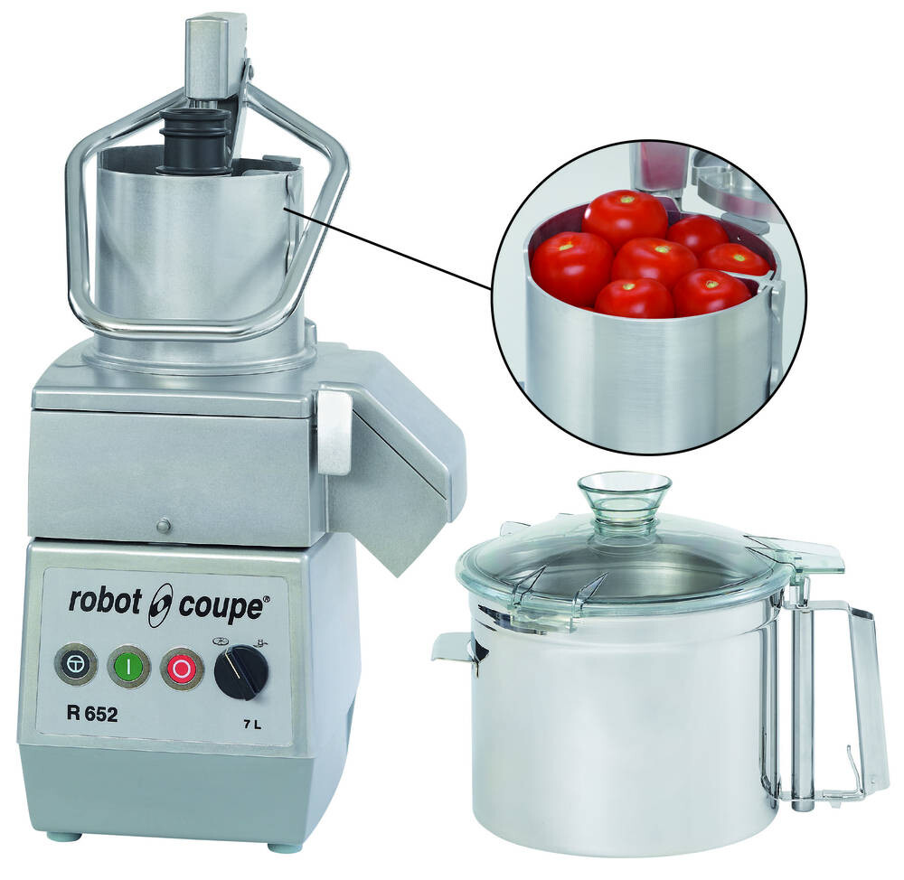 Kombinované zařízení ROBOT-COUPE umožňuje nasadit na stejný blok motoru jedno ze dvou funkčně rozdílných příslušenství, buď krouhací nástavec nebo nádobu kutru toto technické řešení nalézá široké pole působnosti při přípravě jídel, šetří čas i místo v kuchyni na krouhacím nástavci lze plátkovat, strouhat, krájet nudličky, u některých verzí je možné krájet na kostičky a hranolky v kutru lze sekat maso, zeleninu, mandle, oříšky, koření, připravovat majonézu, pyré, protlaky, pomazánky, strouhanku, hnětat těsto aj.