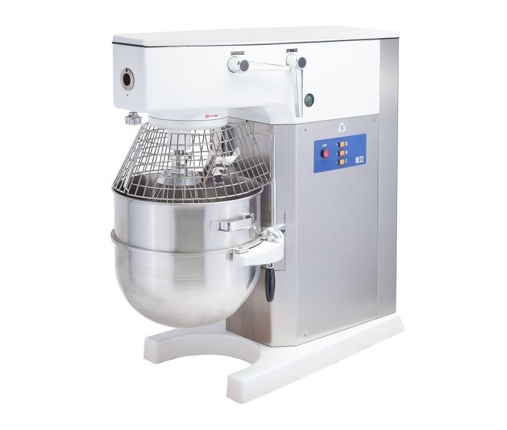 Univerzální hnětací a šlehací stroj RE 22 je poháněn třírychlostním motorem, díky kterému je možné použít nejvhodnějších otáček nástroje pro příslušný pracovní úkon. Spouštění a zvedání kotlíku se provádí na boční straně převodovky. Spustit stroj lze pomocí tří rychlostních tlačítek a vypnout stroj pak pomocí tlačítka STOP. Stroj v neposlední řadě také disponuje mechanickým spínačem ochranného krytu kotlíku.