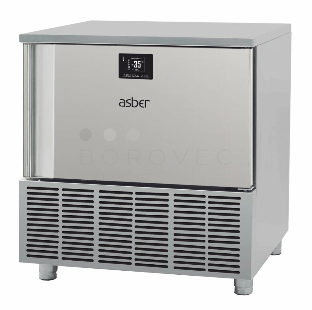 Multifunkční šokové zchlazovače a zmrazovače ASBER určeny pro rychlé, nebo šetrné automatické zchlazení, zmrazení díky technologii, která dynamicky řídí teplotu. Intuitivní elektronické ovládání s velkým dotykovým displejem 2,8” se standardními, ale i extra programy, režimy HARD/SOFT, knihou receptů a HACCP. Zchlazovací a zmrazovací cykly lze řídit upravením času nebo teploty (dle teploty v jádru produktu). Jakmile je cyklus zchlazení/zmrazení ukončen, zařízení se přepne do pohotovostního režimu a funguje dále jako chladnička udržující teplotu mezi +2° a +5 °C, nebo mraznička, kde udržuje teplotu na -18 °C. Zařízení je v klimatické třídě 4 vybeveno úsporným ekologickým chlazením.