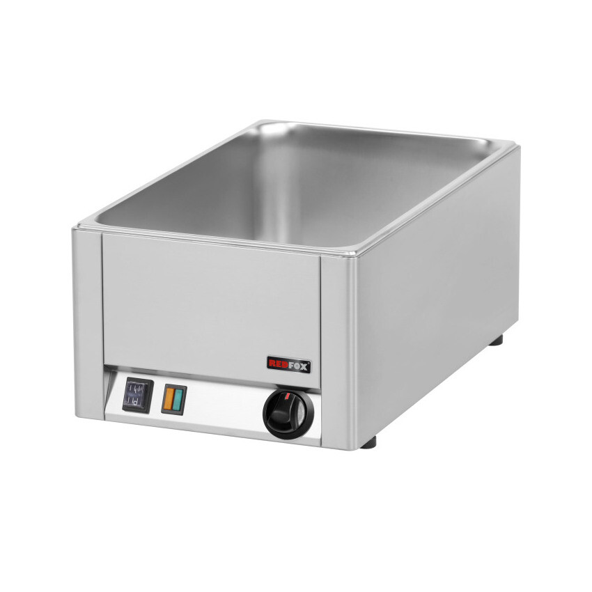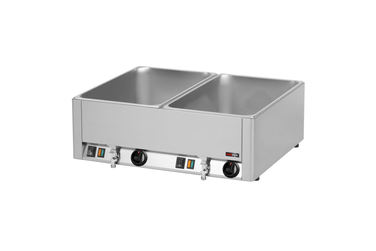 Stolní vodní lázně REDFOX disponují lisovanými vanami se zaoblenými vnitřními rohy pro pohodlné čištění a údržbu. Vana i vrchní deska je vyrobena z nerezové oceli AISI 304. Výpust lázně se nachází v přední části a je zajištěna pojistkou. K dispozici je jako samostatné stolní zařízení nebo s možností montáže na neutrální skříň z nerezové oceli AISI 430.