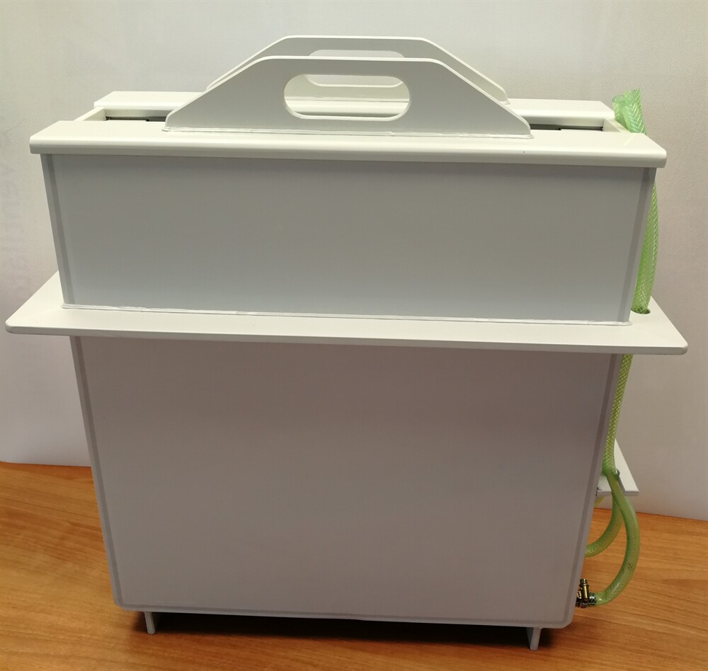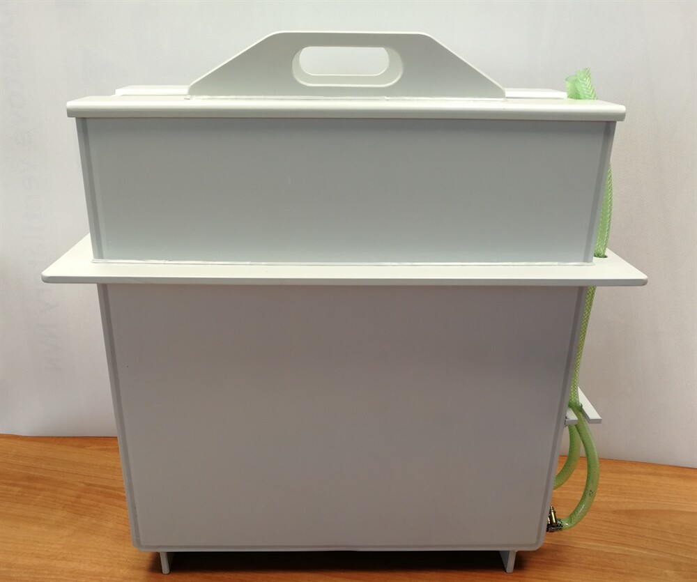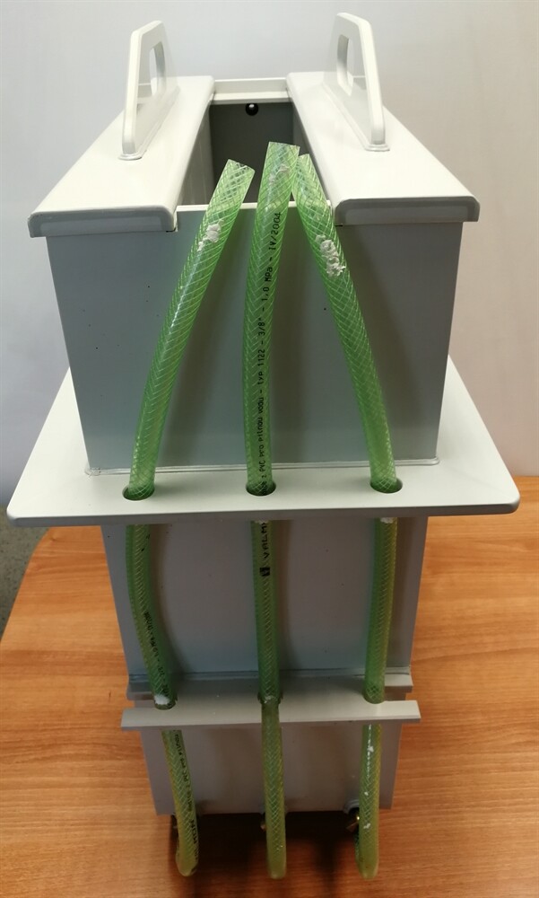 Na straně jsou osazeny vývody s hadicí pro vypouštění náplně.